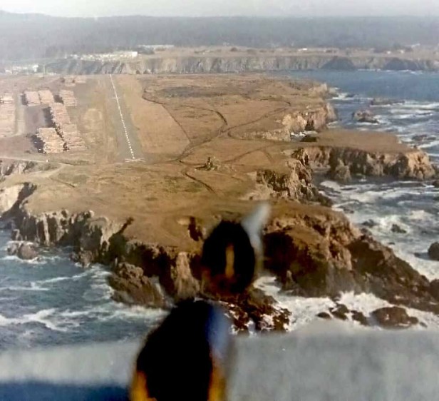 During our visit in Fort Bragg, Sonja and I hiked the dramatic coastline. We hiked the trail along the tall cliffs overlooking a jagged coastline. The path itself cut through private property, formerly owned by the Union Lumber Company. There was something distinctly unusual about the land, and sure enough, when we discovered a decrepit runway, we learned that this was once the sight of the old airport owned by the Union Lumber Company.