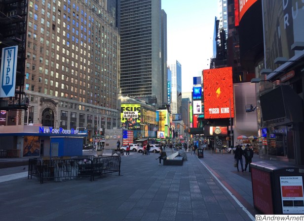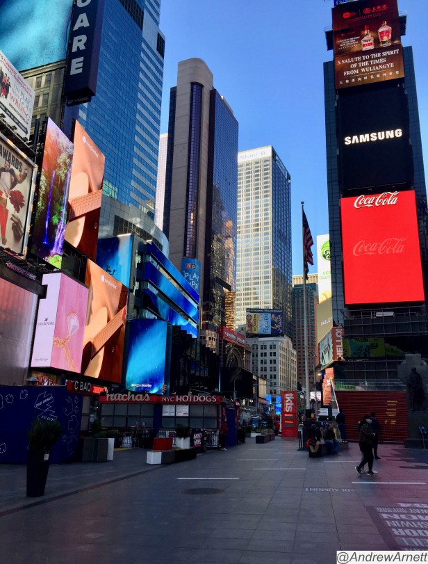 There was an eerie sparseness in Times Square as well. “The crossroads of the world,” as they call it, had few people passing through. No surprise since all international travel to Europe and China had been shut down in the past few weeks. Broadway closed down last week. When will the Great White Way open again? That’s the big question on everyone’s mind – when will this madness end? No one knows for sure.