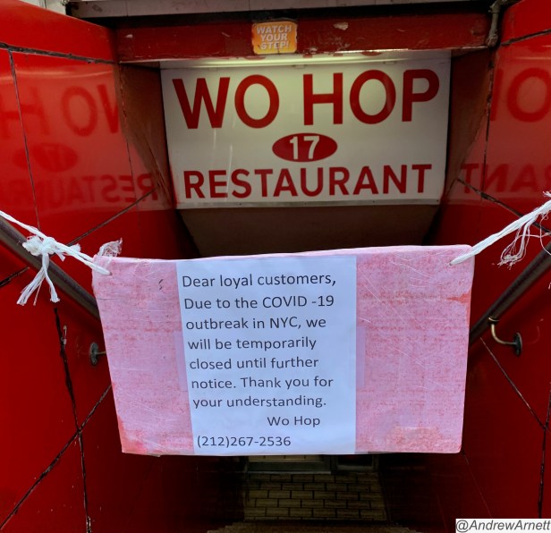 This is a f@cked up situation. I hate this Corona Virus. I hate what it has done to this mighty city, and the world. Down in Chinatown, it was no different. Shuddered doors and windows on most of the restaurants. Even the iconic Wo Hop, which stays open 24/7 and probably hasn’t been closed since 9-11 was closed. This is like a bad dream. A nightmare. Yes, sure, I want to click my heals three times like Dorothy and wake up in Kansas. But Kansas has 70 cases of COVID-19 confirmed.