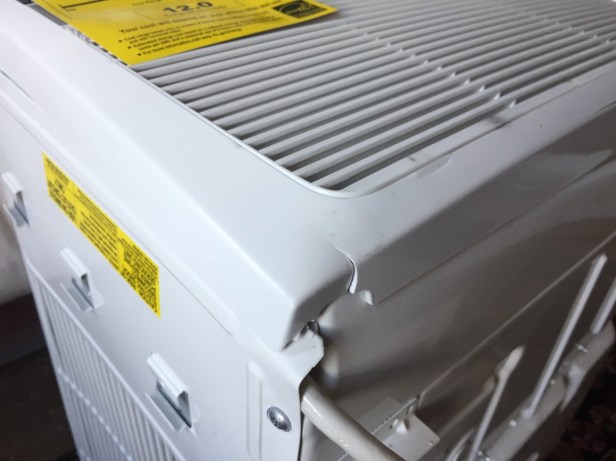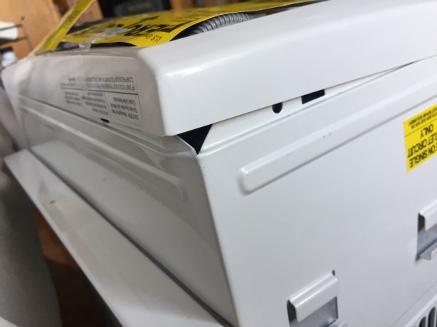 The vents across the top popped out like bulging eyeballs. On the metal in back, there were unsightly dents. We didn’t even plug the machine in. Why bother? This product was beat. It had to go.