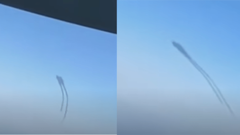 Shot in March of 2019 on a commercial flight from Phoenix to Portland, this video shows two dark objects trailing tails and/or tentacles. Less like a ship and more organic, these bizarre creatures move in a peculiar fashion and at one point appear to merge into one. They remind me a bit of the squid like sentinels from the Matrix movies. Check out the video below and see for yourself.