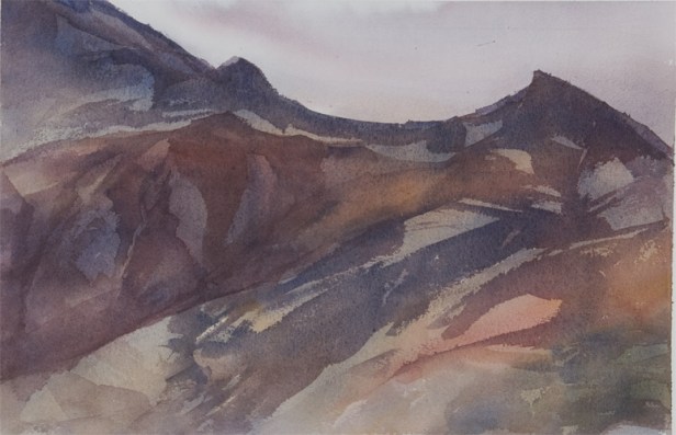 HENDRICKSON: I travelled to Dogubeyazit, Turkey for the 1st time in 2000. I went to paint the surrounding mountains which are strangely formed and colored with various mineral deposits. Dogubeyazit is an ugly town of Soviet style apartment buildings and a military base. Prior to 1980 -1990, the citizens lived in mountain villages but they had been forcibly removed by the Turkish government. Approximately 5,000 villages along the borders of Iran and Iraq were destroyed. Employment was low, few industries in the Kurdish region, smuggling a way of life for many.