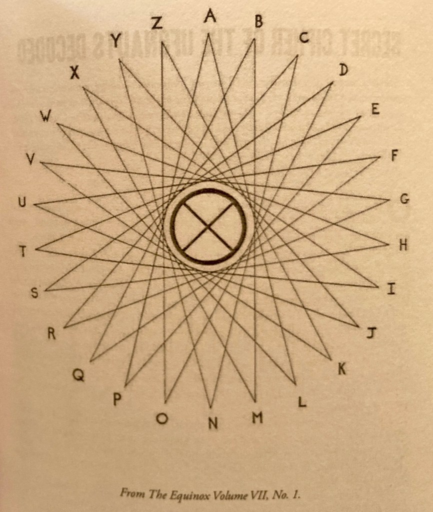 The origins of this Cipher go back to Aleister Crowley and even, much further back than that. Apparently, there are different iterations of the Cipher, throughout history. Crowley stumbled upon the most recent version, updated for those now living in the newly minted Aeon of Horus. The Cipher is encoded in Crowley’s Liber AL vel Legis (The Book of the Law), a central text concerning Crowley’s philosophy of Thelema.