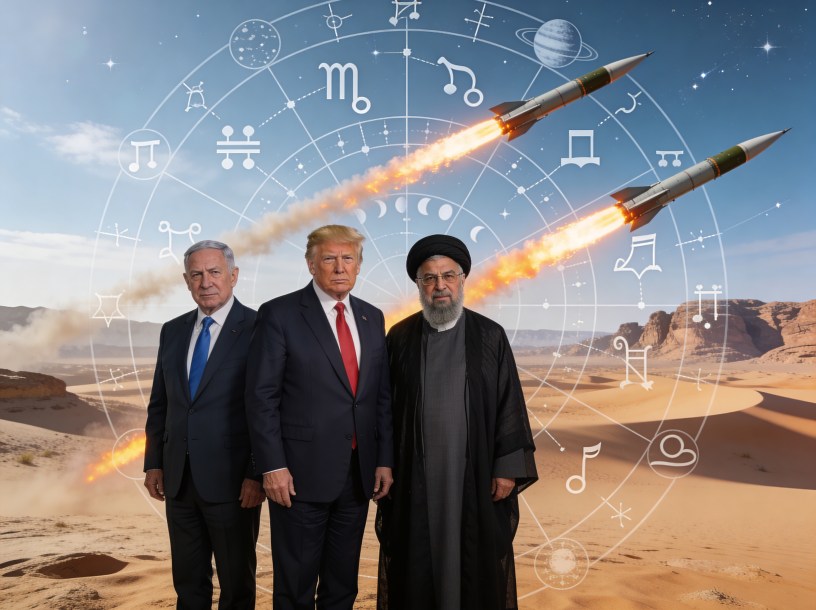 whose chart reading of the three pertinent leaders (Trump, Khamenei and Netanyahu) shows the following: All three were afflicted with an Eclipse, either sun or moon. Trump was born on the day of a Lunar Eclipse. Khamenei was born on the day of a Solar Eclipse. And Netanyahu was born within one day of a Solar Eclipse.